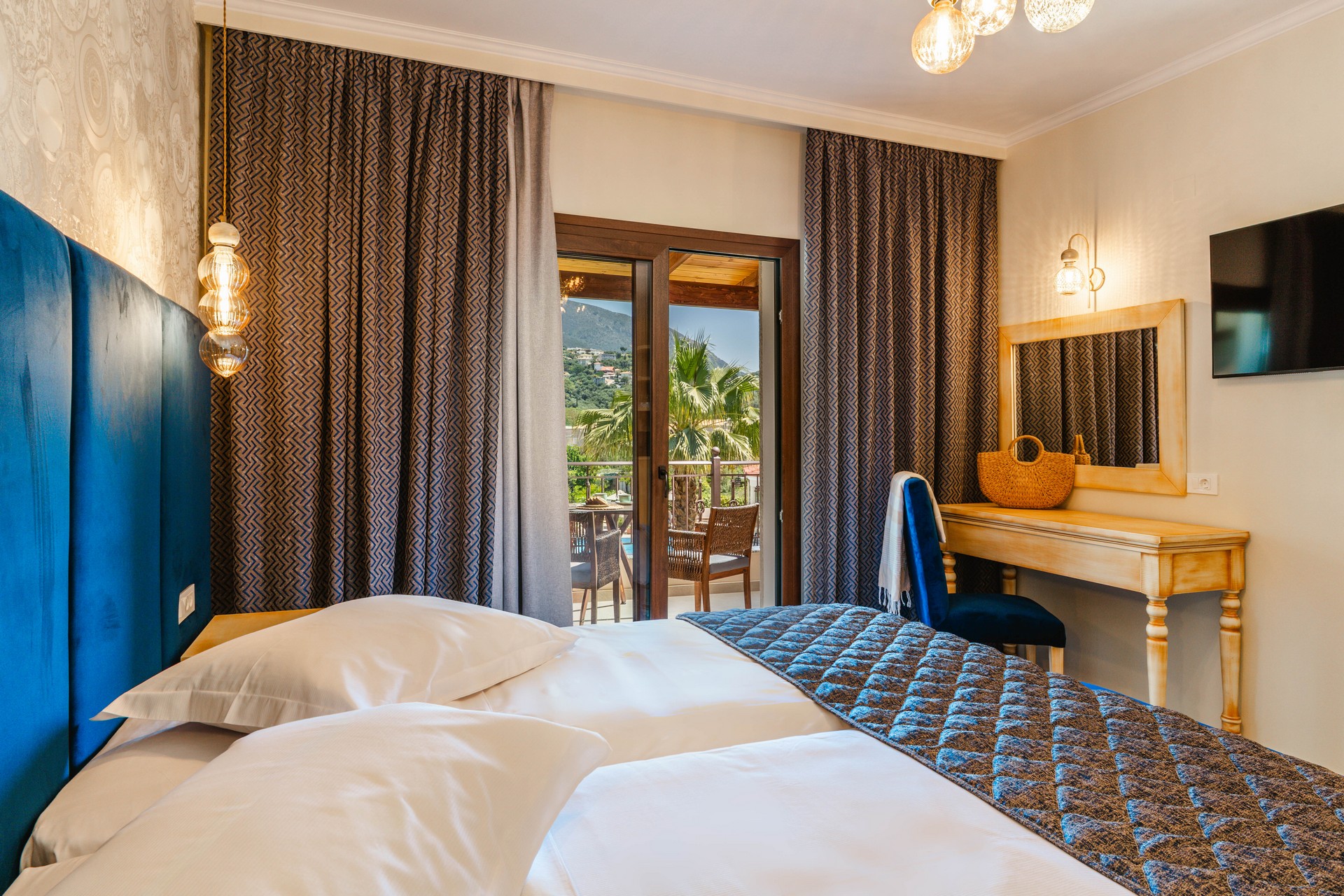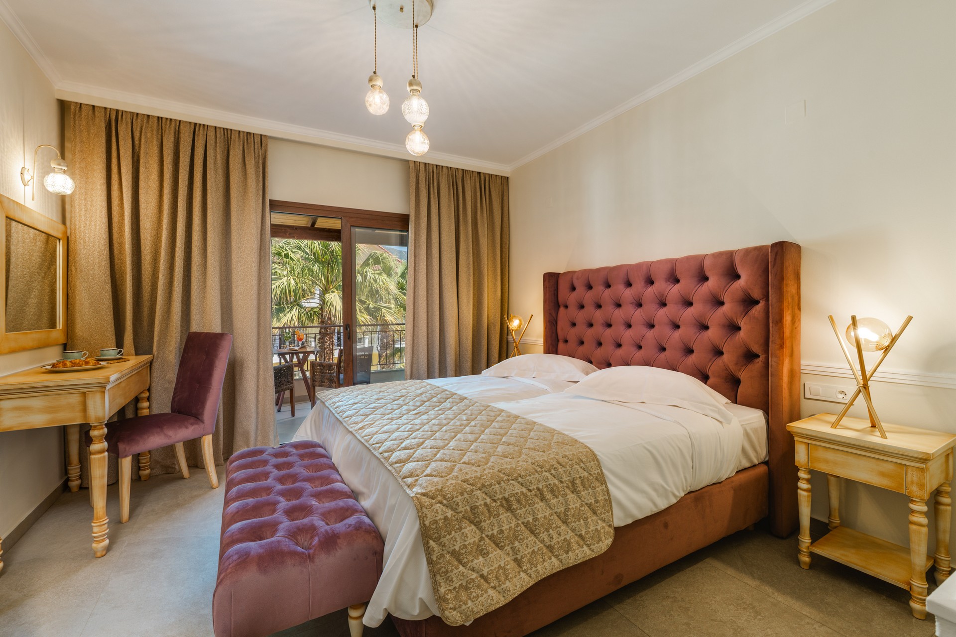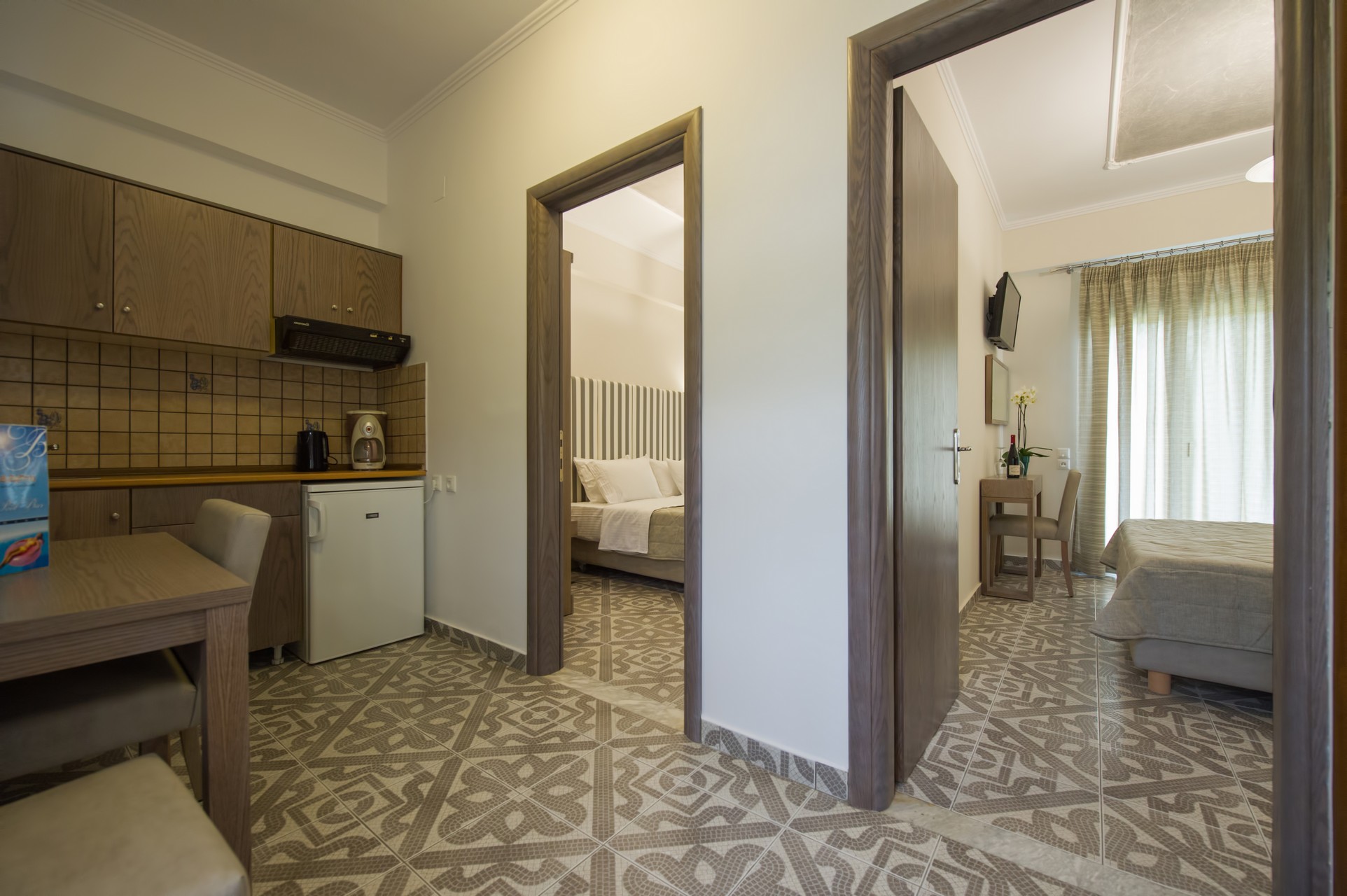 Byzantio Resort offers its guests 22 studios and a superior studio that can accommodate 2-3 people, 6 quad apartments, luxury double rooms and luxury studios for 4-5 persons. All the units are spacious, beautifully decorated and fully equipped. They provide a kitchen with all the necessities, balconies with a view of the garden or pool, free Internet access, parking, access to the pool and surrounding areas.